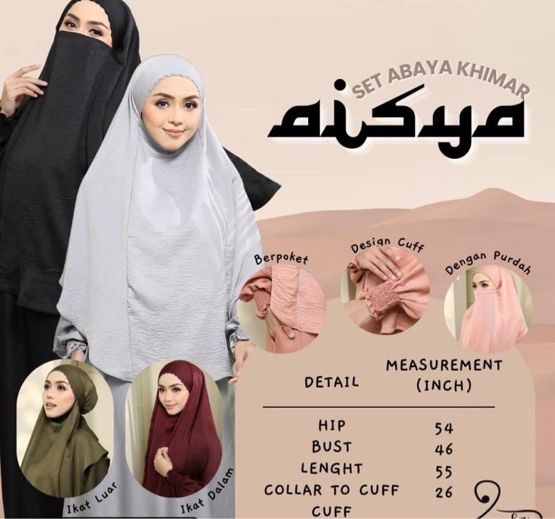 The AISYA KHIMAR ABAYA TANGAN GETAH is designed especially for Ramadan. I With its rubber sleeves, high-quality fabric and limited edition design - this abaya is hot selling among our customers!