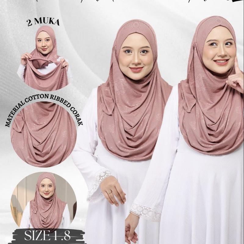 Instant Hijab - 2 Face hole Shawl in Cotton Ribbed with floral embossed for Versatile Styling Options